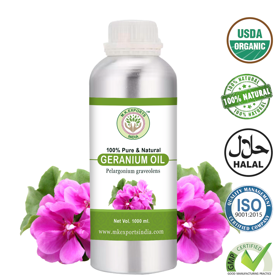 Huile essentielle de géranium pur de qualité cosmétique pour les sérums, les crèmes et les toners.