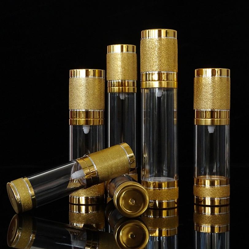 Emballage cosmétique, flacon pompe sans air en plastique vide, 15 ml, 30 ml, 50 ml, 100 ml, flacon pulvérisateur or argent, 1 oz