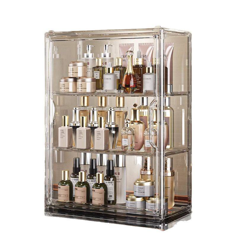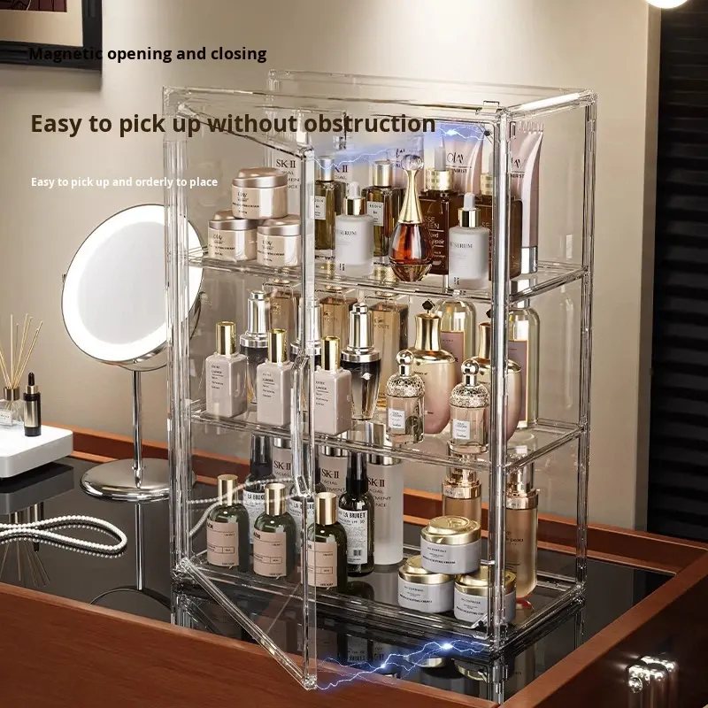 Boîte de rangement cosmétique haut de gamme en acrylique transparent, anti-poussière, grande capacité, organisateur multi-couches pour produits de soin, à poser sur comptoir
