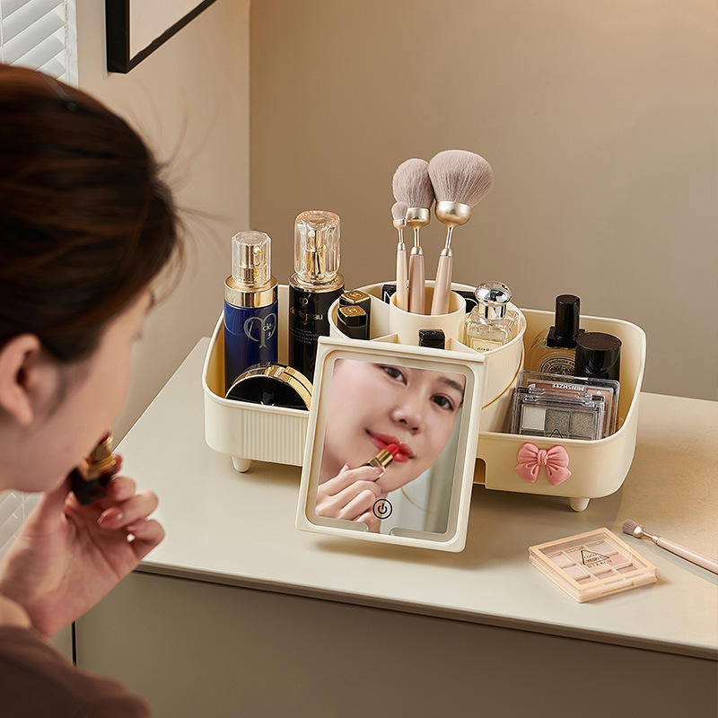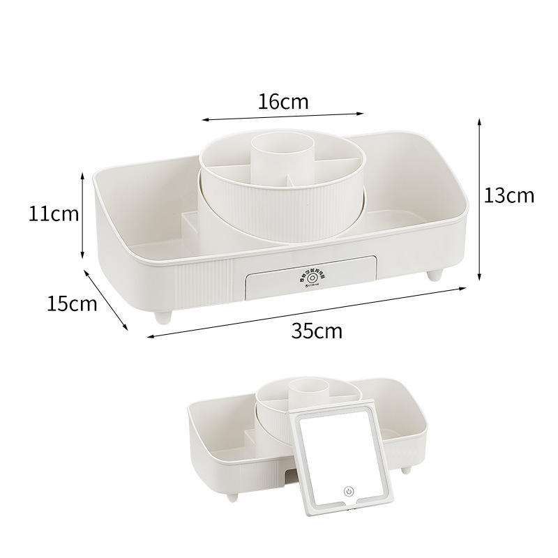 Boîte de rangement cosmétique avec miroir, organisateur de bureau en plastique de 35 cm pour pinceaux de maquillage, rouges à lèvres, fards à paupières, support de tiroir