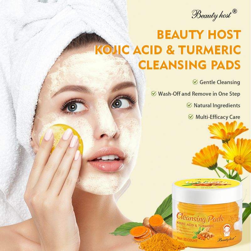 Kit de Soins du Visage et Ensembles de Soins de la Peau en Gros pour Usine de Cosmétiques, Marque Privée, avec Tampons de Coton au Curcuma et Nettoyant à l'Acide Tartare