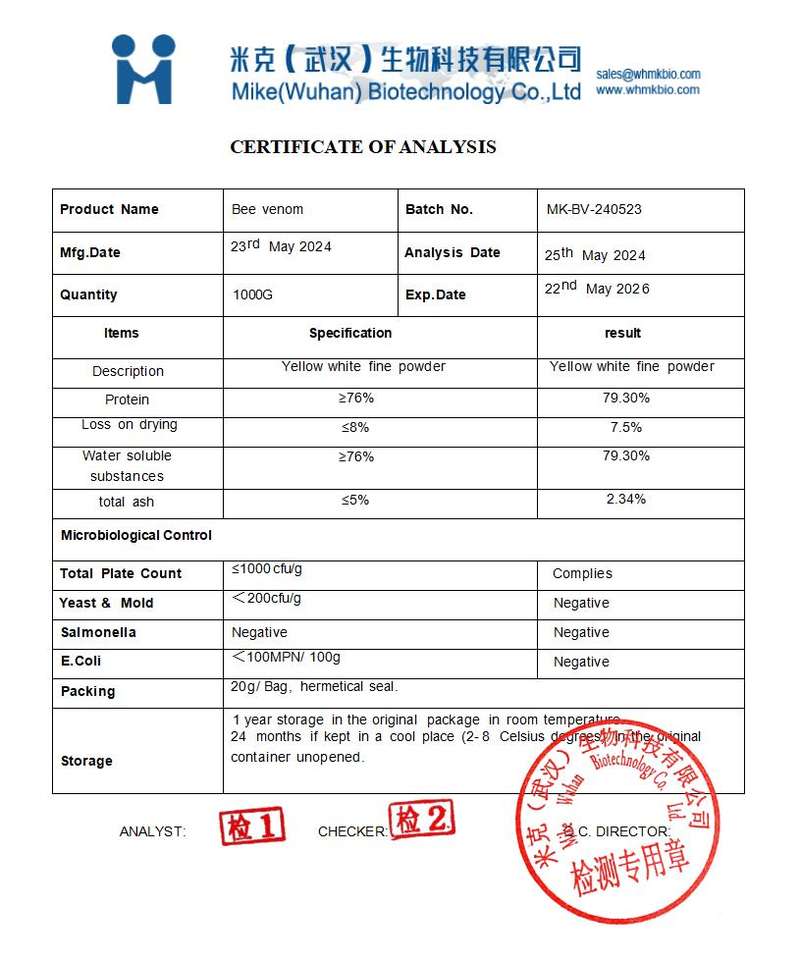 Poudre de venin d'abeille de qualité cosmétique venin d'abeille naturel pur