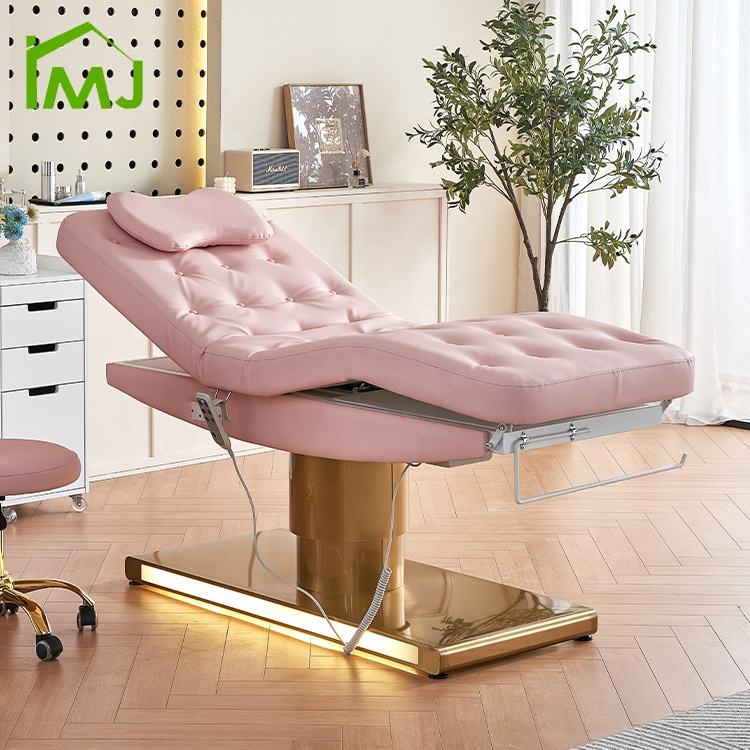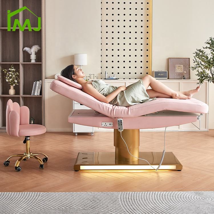 Table de soin du visage de salon de cosmétique, table de beauté électrique incurvée, lit pour les cils