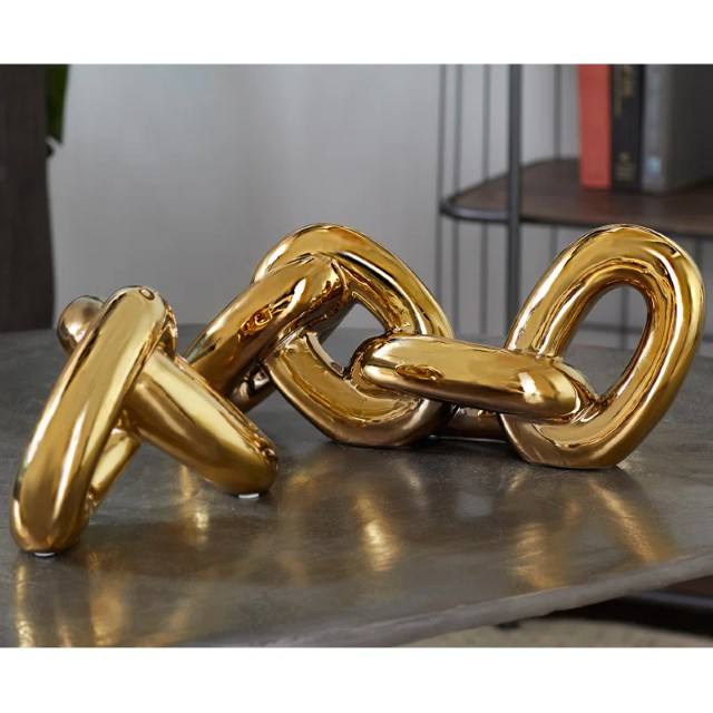 Sculpture de chaîne en porcelaine glamour cosmopolite CosmoLiving artisanat en métal doré décoration de la maison salon de luxe