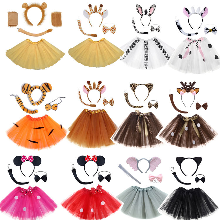 Mots clés:Ensemble de Costumes pour Filles : Serre-tête Oreilles de Chat, Tigre, Guépard, Éléphant, Queue et Tutu