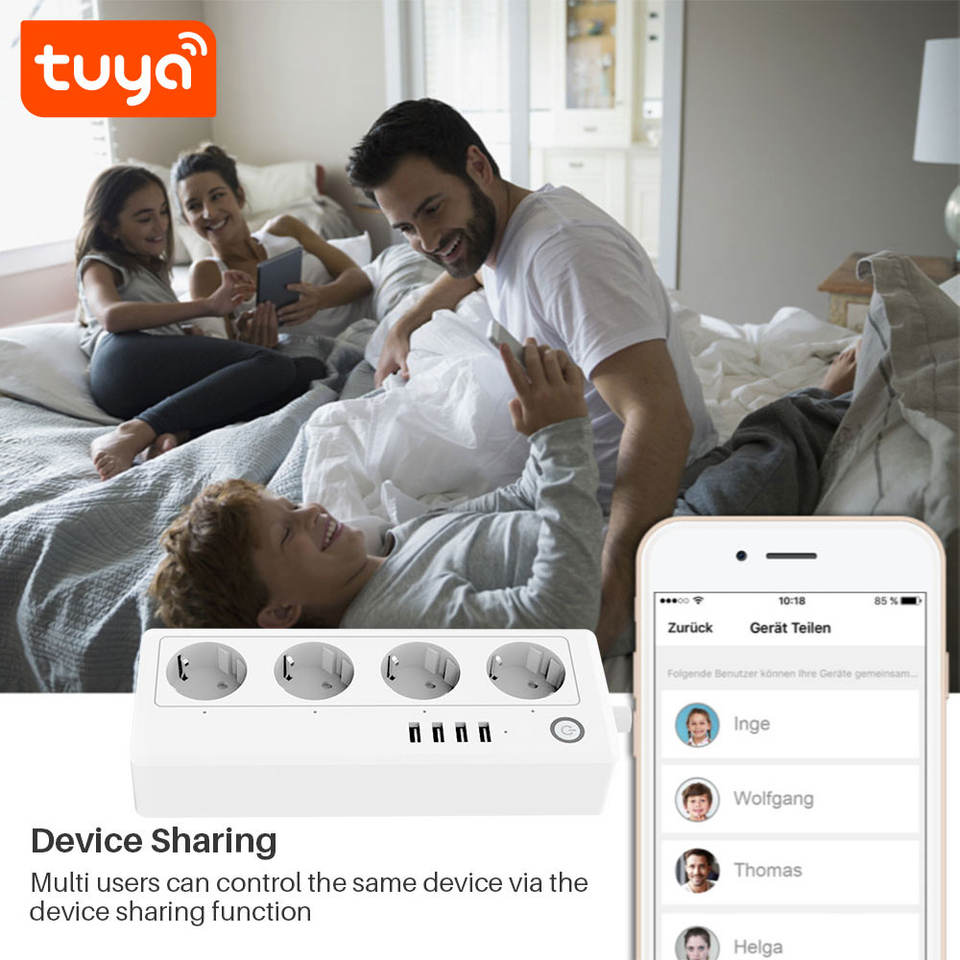 Prise intelligente WiFi Tuya Smart EU à quatre prises