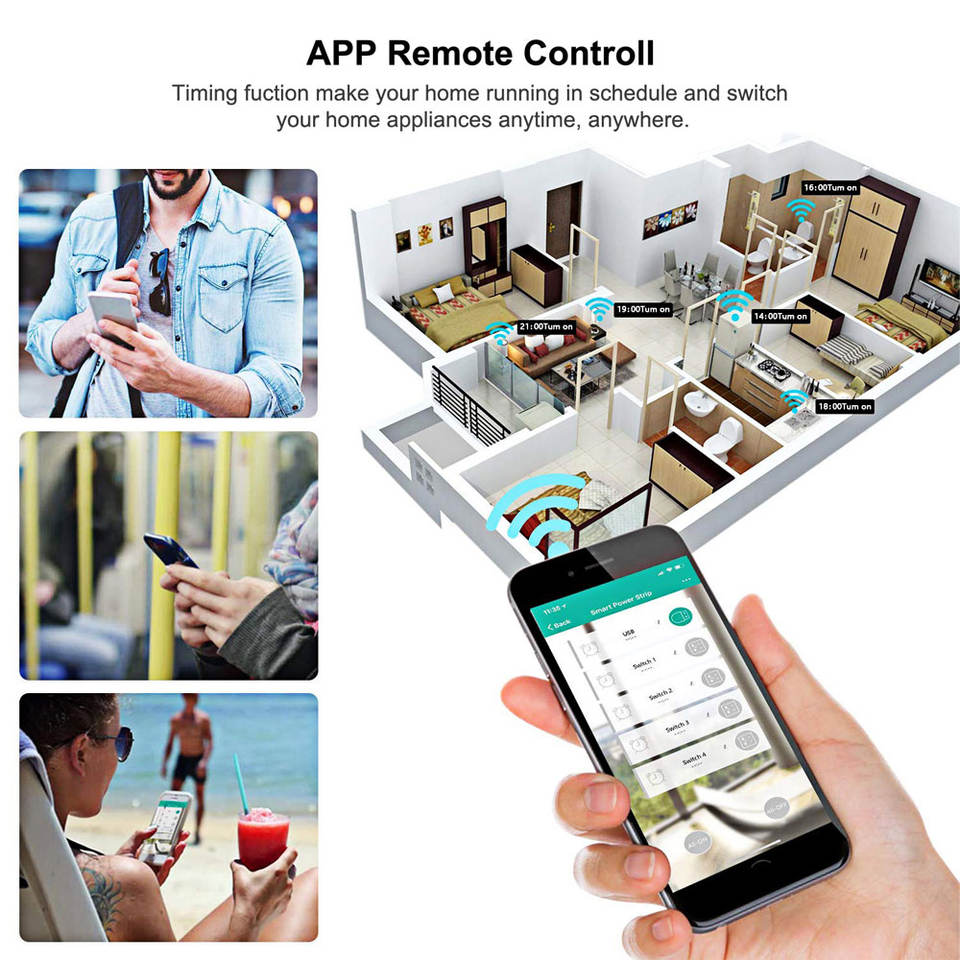 Prise intelligente Wi-Fi Tuya à quatre prises avec assistance vocale, 1,5 m, charge rapide USB, compatible UE uniquement, économique PST-SA-P702U