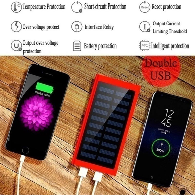 Banque d'alimentation solaire ultra-mince 20000 mAh avec lampe de poche LED intégrée et logo personnalisé pour iPhone et Samsung