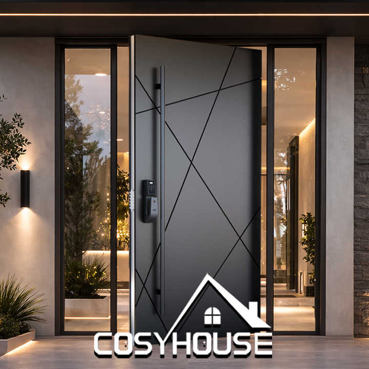 Porte pivotante moderne CosyHouse avec vitrage latéral, en aluminium moulé à rupture de pont thermique