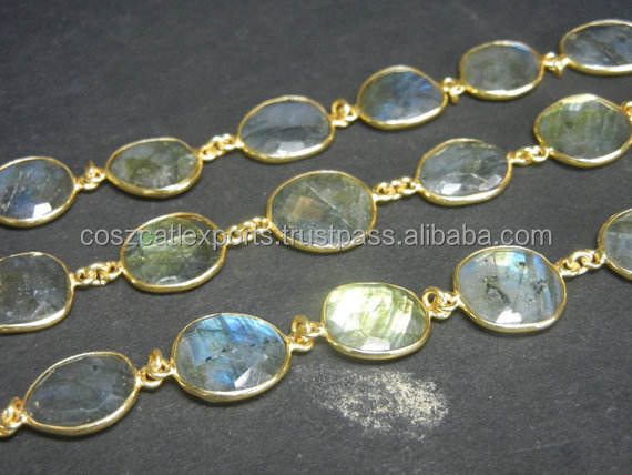 Coszcalt exporte Labradorite pierres précieuses connecteur perles chaîne plaqué or lunette ensemble BG0120 pour la fabrication de bijoux