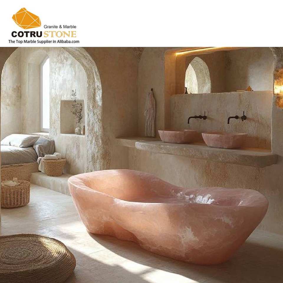 Baignoire sur Mesure en Onyx Rose Irrégulier Cotrustone pour Appartement et Villa