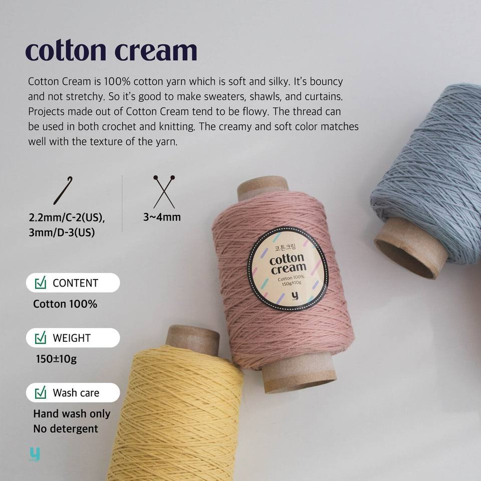 Cotton Cream (150g) South Korea High Quality Cotton Soft Pastel Yarn for Crochet Knitters