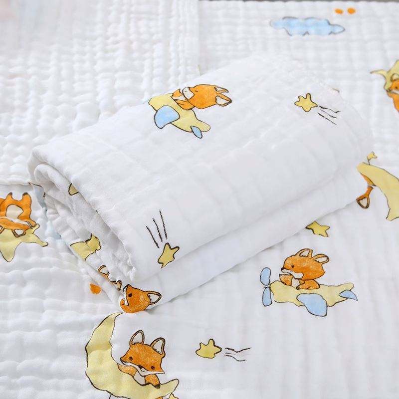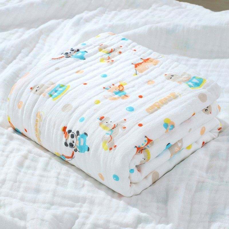 Cotton 6-Layer Woven Swaddle Blanket Newborn Bath Towel with Cartoon Animal Design Baby Muslin Blanket