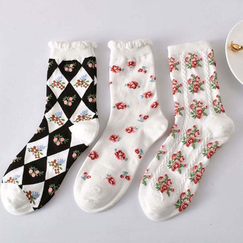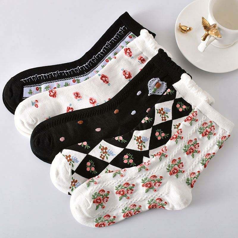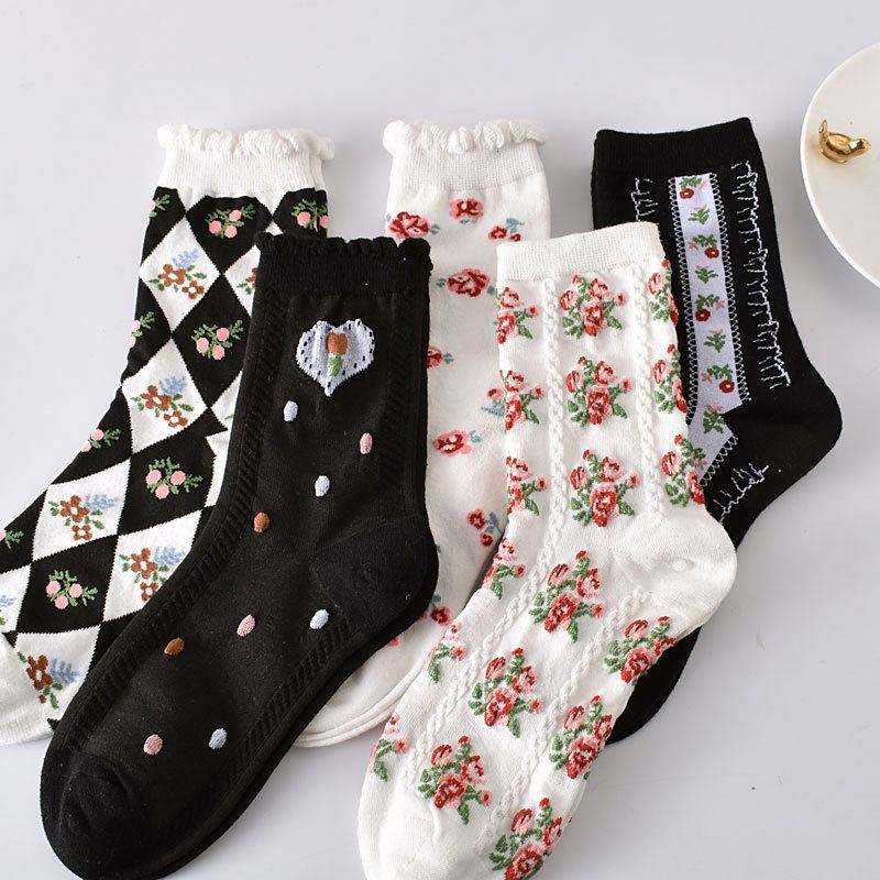 Chaussettes mi-hautes en coton pour femme, motif relief 3D noir et blanc, style coréen, collection automne-hiver