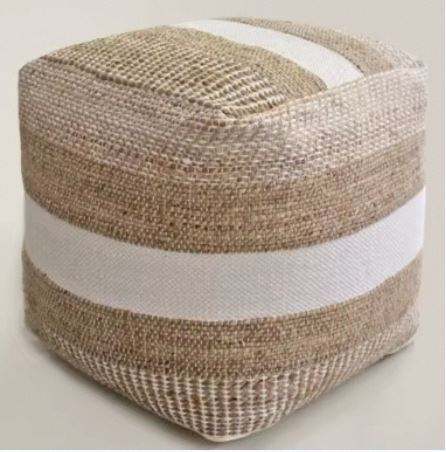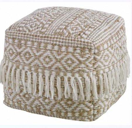 Pouf en corde de coton artisanal de luxe | Pouf décoratif en tissu de bambou à motif feuillage, assise rembourrée en PU pour la pièce