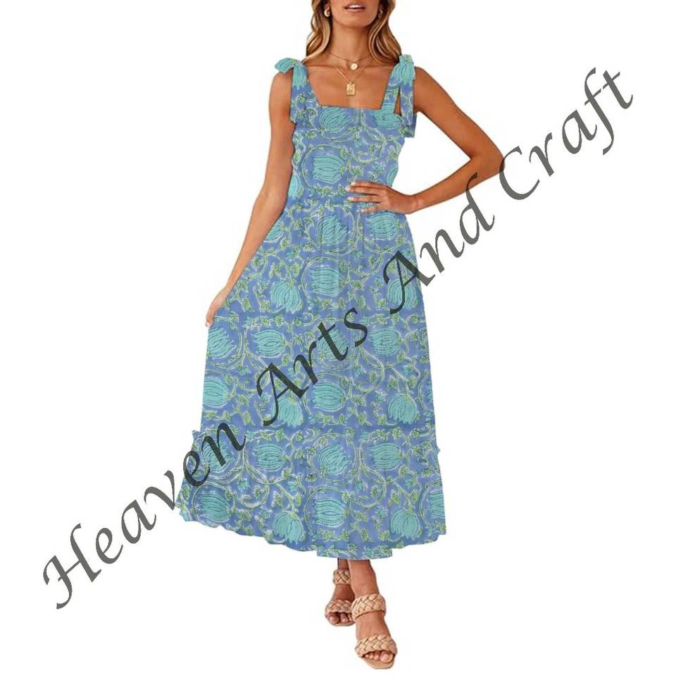 Numéro de Type:Hand Block Printed Spaghetti Strap Dress