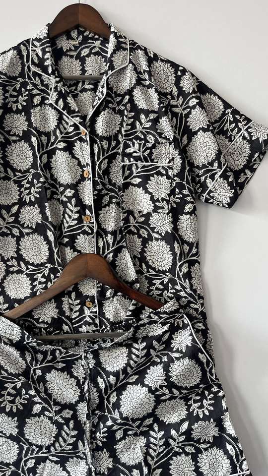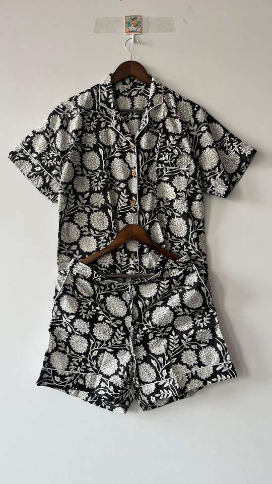 Ensemble de pyjama en coton imprimé en blocs Ensemble de pyjama pour demoiselle d'honneur Tenues de nuit Ensemble de pyjama pour femme Chemise et short en coton