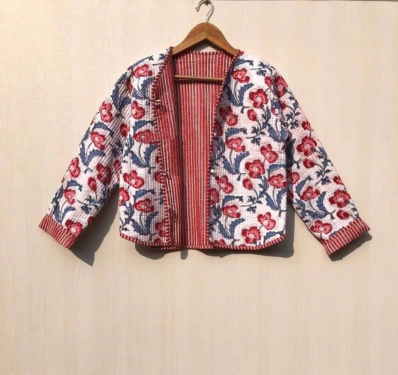 Veste matelassée en coton imprimé de style Boho pour femmes manteau respirant fait à la main avec bouton plus proche pour les cadeaux de vacances