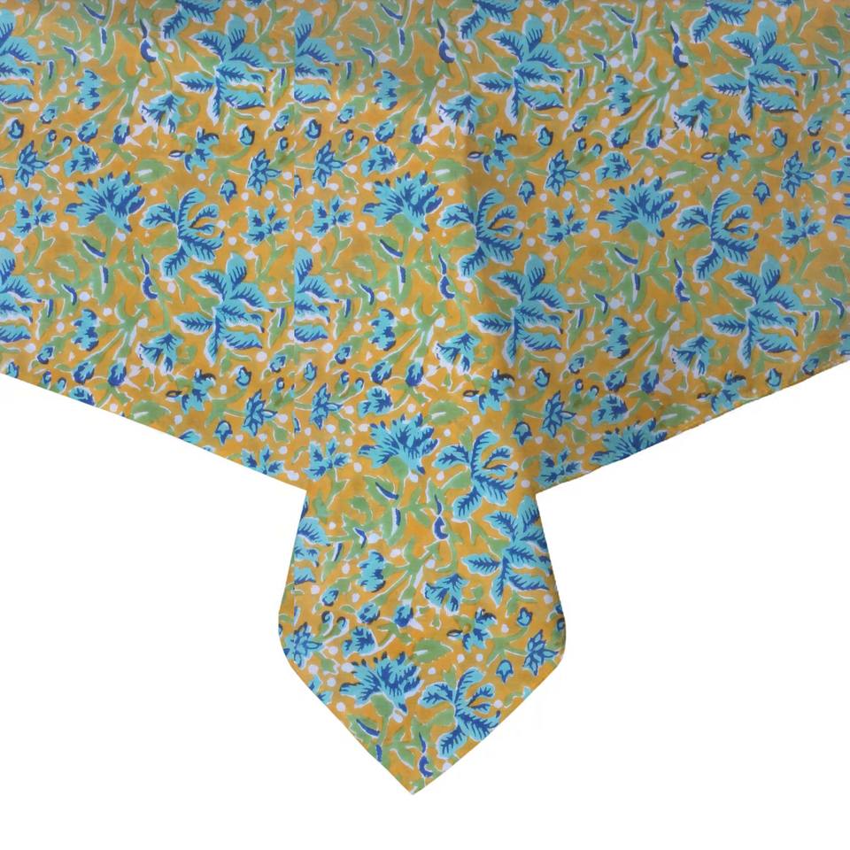 Linge de table carré en coton imprimé en blocs Nappe de table carrée avec nappe en tissu imprimé à la main florale