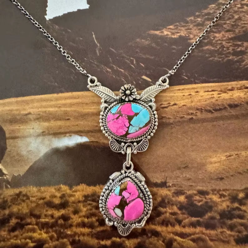 Pendentif en turquoise coton de laine, collier en turquoise naturelle, charme en pierre précieuse bleu pastel, pendentif bohème, cadeau pour elle