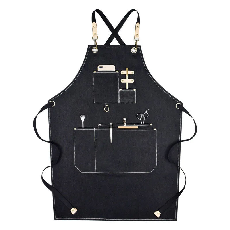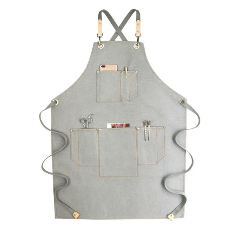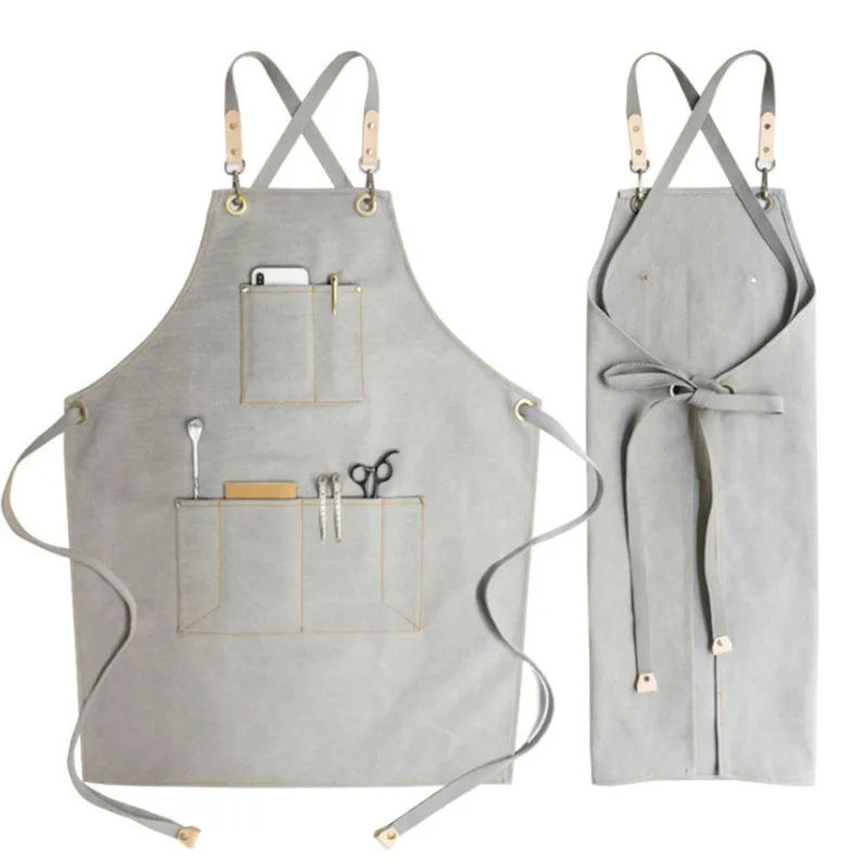 Cotton Canvas Apron For Unisex Aprons Chef BBQ Custom Delantales Kitchen Black Blue White Grey Aprons Tablier De Cuisine