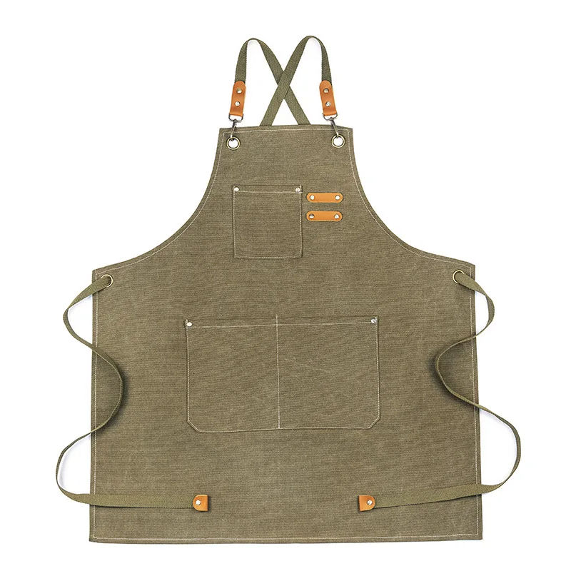 Tablier en toile de coton OEM avec logo personnalisé Tablier de cuisine pour chef cuisinier résistant à l'abrasion extra épais à plusieurs poches pour le travail