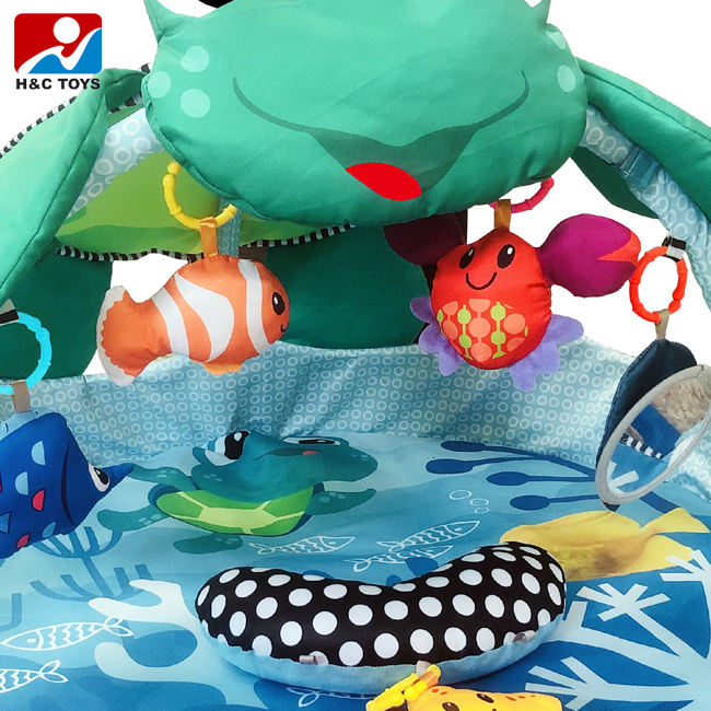 Tapis de jeu rampant en coton avec 12 chansons anglaises Puzzle Support de fitness éducatif musical pour enfants inspiré par Ocean World