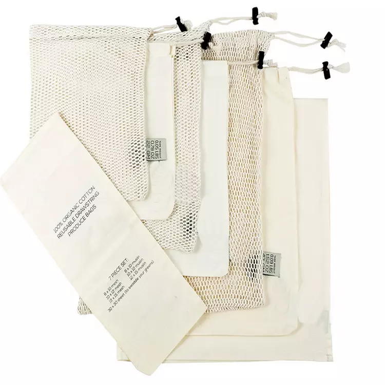 Sacs à cordon de serrage en coton naturel, pochettes cadeaux à cordon imprimé, réutilisable et lavable, tissu en coton