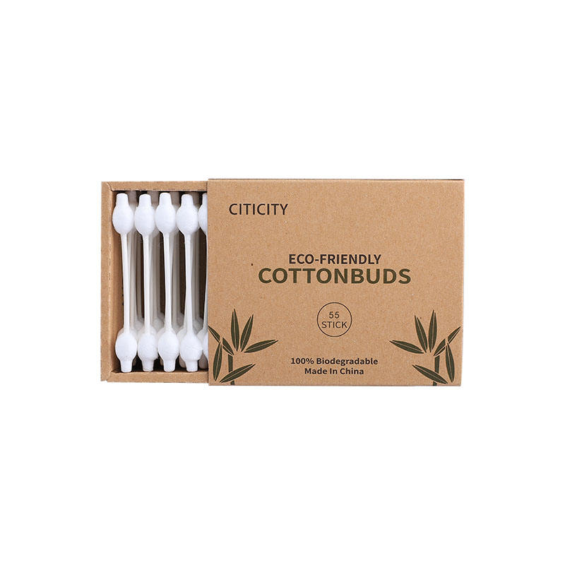 Bâtonnets d'oreille en coton faciles à utiliser, tête double gourde, 55 pièces, coton-tige en papier blanc avec boîte en papier à tiroir