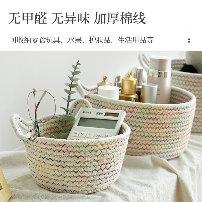 Panier de rangement rond en coton fait main avec oreilles de chat, 100% coton tissé, organiseur pour clés et articles divers sur le bureau