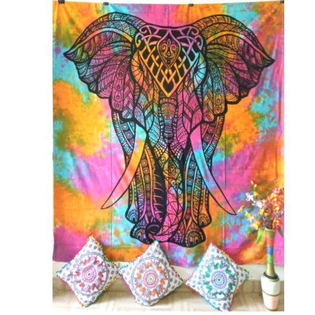Tapisseries à imprimé animalier pour la décoration intérieure, tentures murales en coton, motif éléphant, magnifiques, faites à la main, multicolores, par des artisans indiens