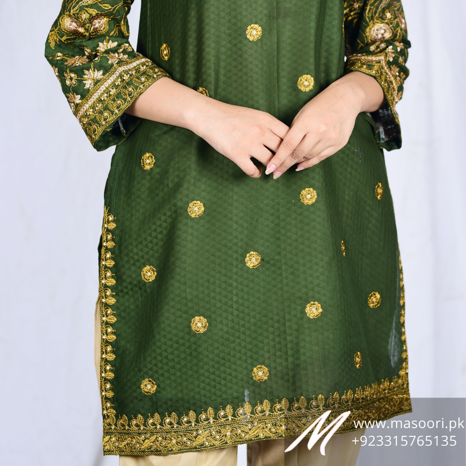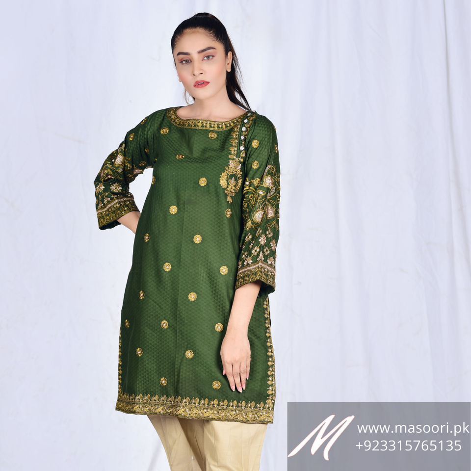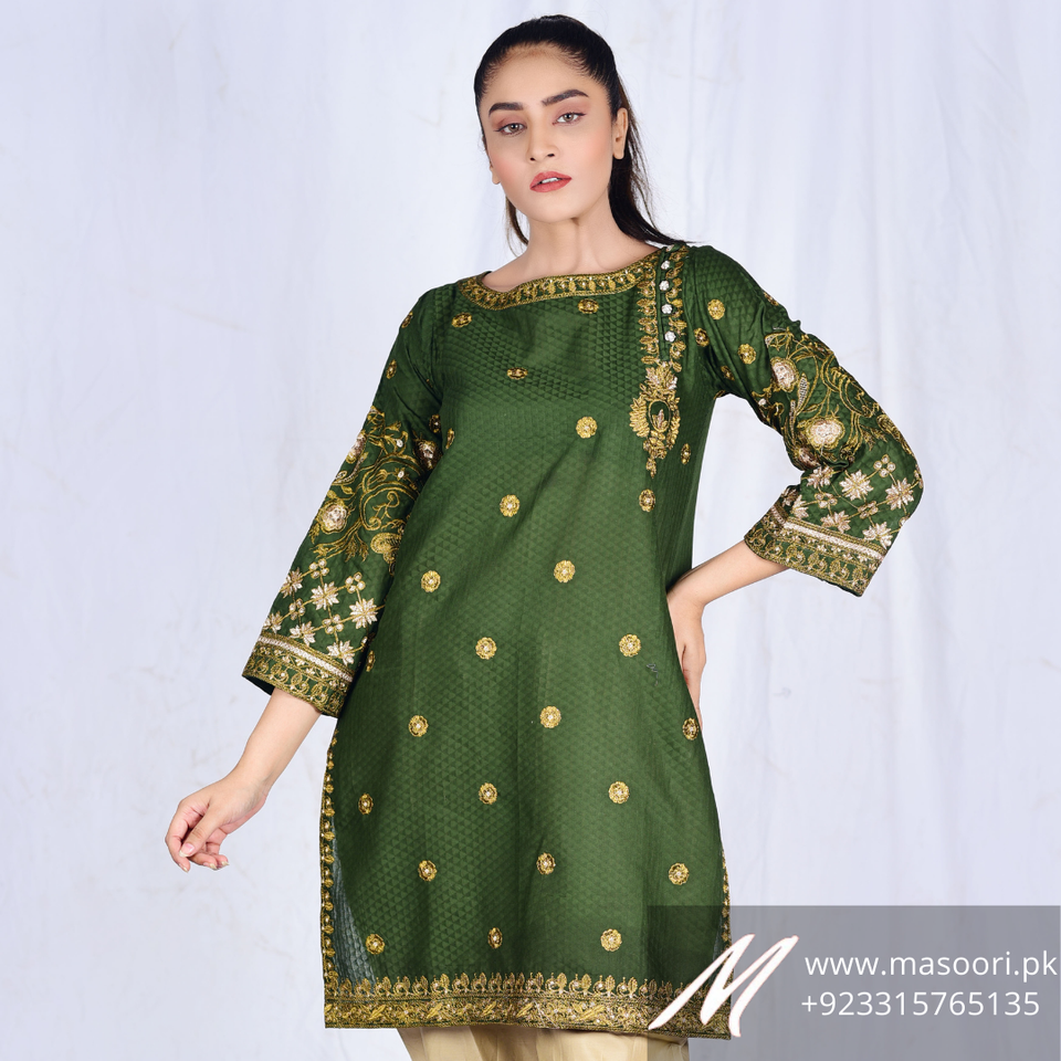 Kurta/Kurti d'été pour femmes en tissu de coton Masoori avec bordure décorative Tilla et broderie, Inde et Pakistan