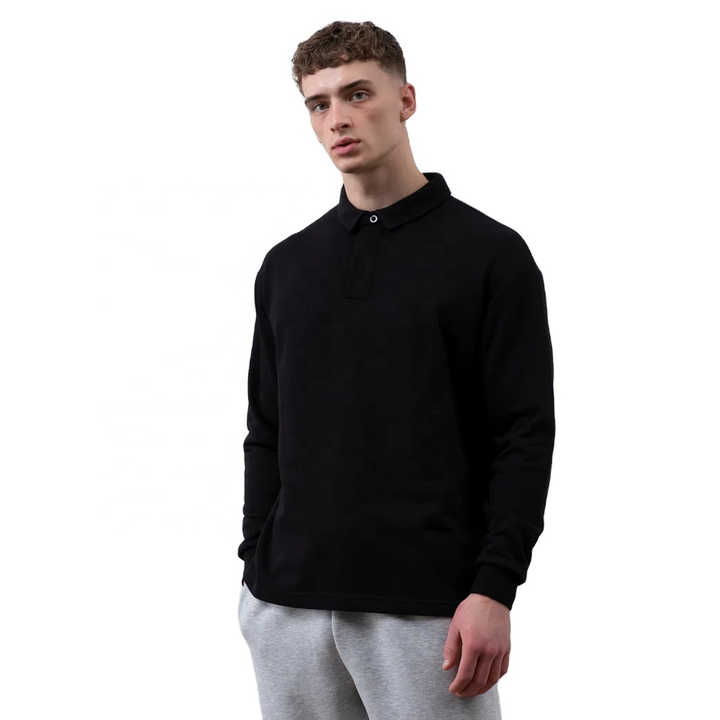 Sweat-shirt de rugby à capuche en molleton de coton, coupe oversize, épaules tombantes, boutonné, pour l'automne, uni, brodé, impression numérique