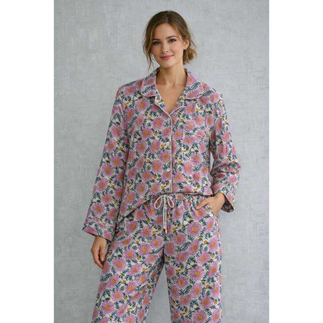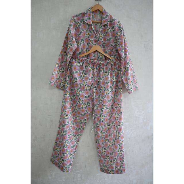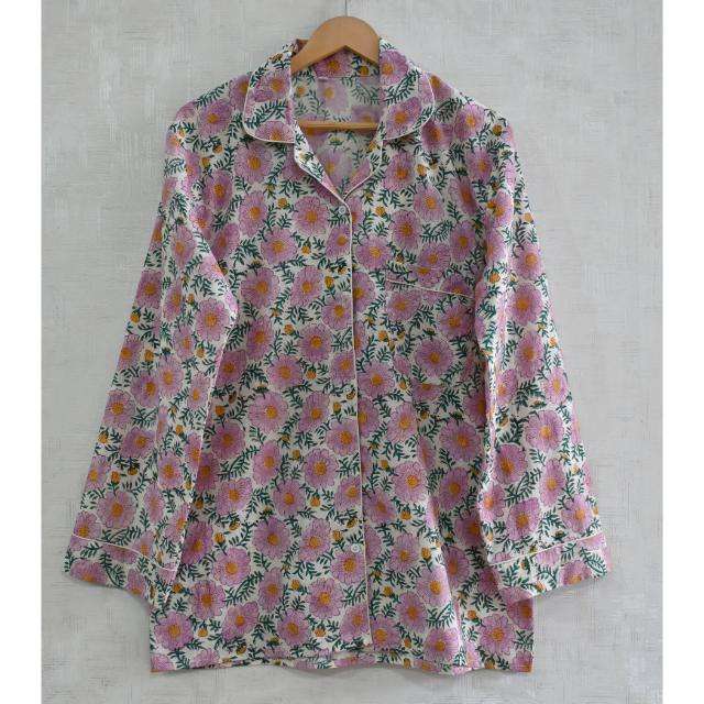 Ensemble de pyjama en coton imprimé à la main pour femmes, vêtements de nuit doux avec une coupe confortable pour les vêtements de nuit de tous les jours
