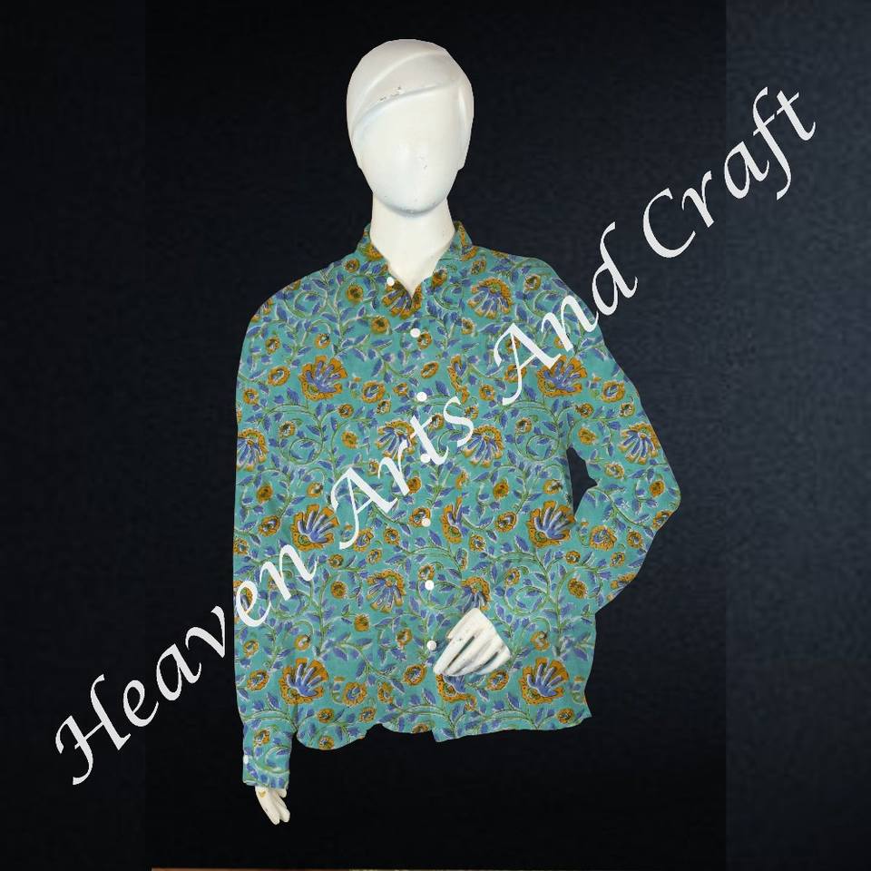 Cotton Hand Block Print Shirt Handmade Summer O Neck Closer Party Wear Shirt Women Casual Wear Shirt