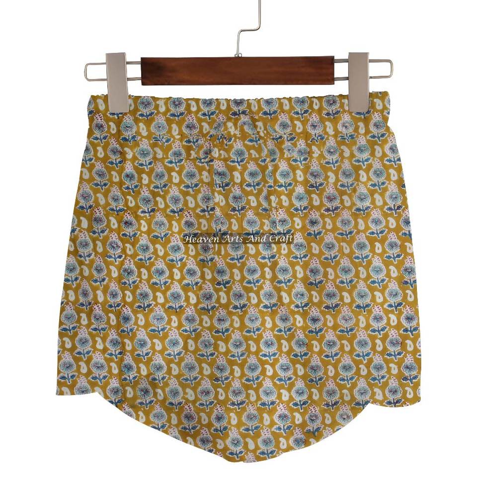Shorts en coton imprimé à la main pour femmes, vêtements de détente d'été, shorts en coton imprimé à la main, collection de plage pour filles, baby doll