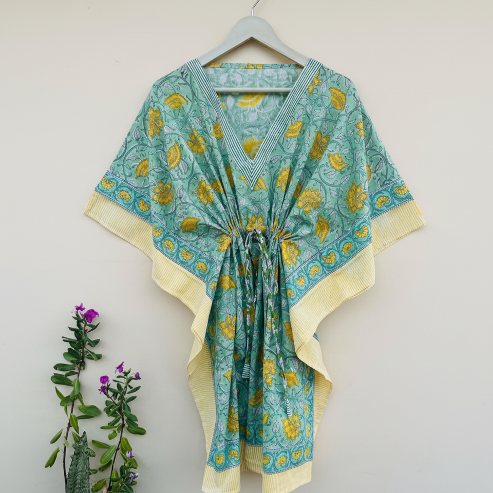 Caftan en coton imprimé à la main longue robe de nuit ample pour femmes caftan en coton indien pour femmes