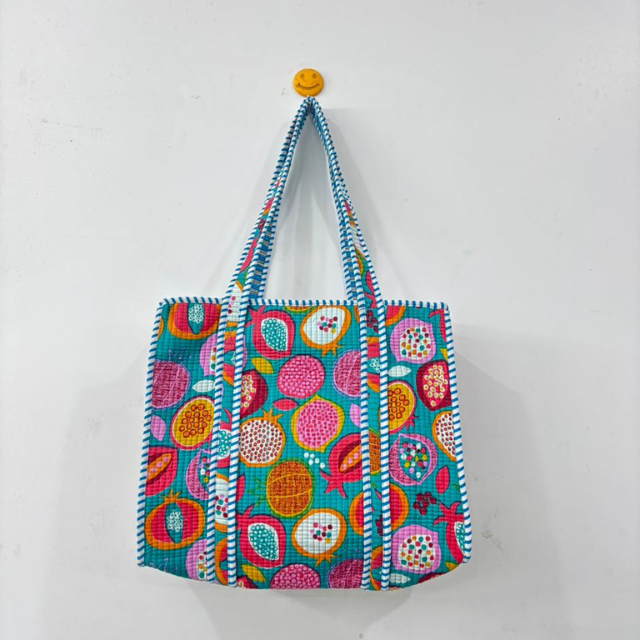 Sacs fourre-tout matelassés en coton imprimé à la main, sacs fourre-tout indiens traditionnels, sacs fourre-tout artisanaux avec impression à la main