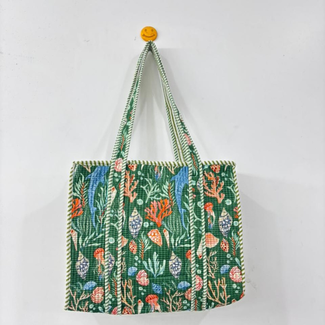 Cotton Hand Block Printed Quilted Tote Bags, Traditional Indian Tote Bags, Handcrafted Tote Bags with Hand Block Prints Tote Bag