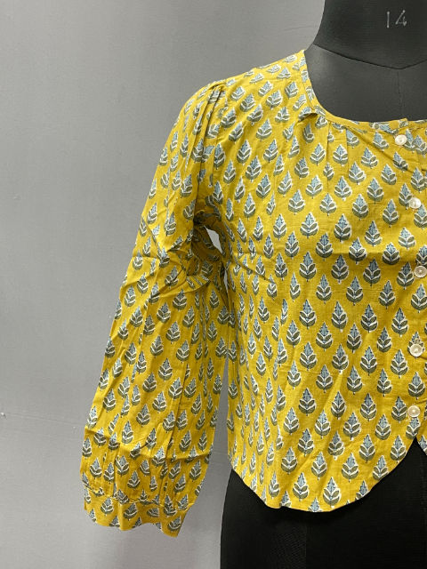 Haut en coton imprimé à la main pour femmes | Vêtements d'été décontractés, coupe confortable, hauts de mode pour tous les jours