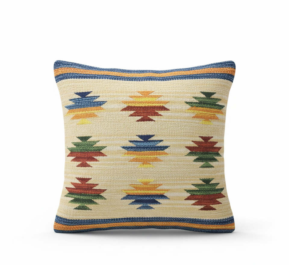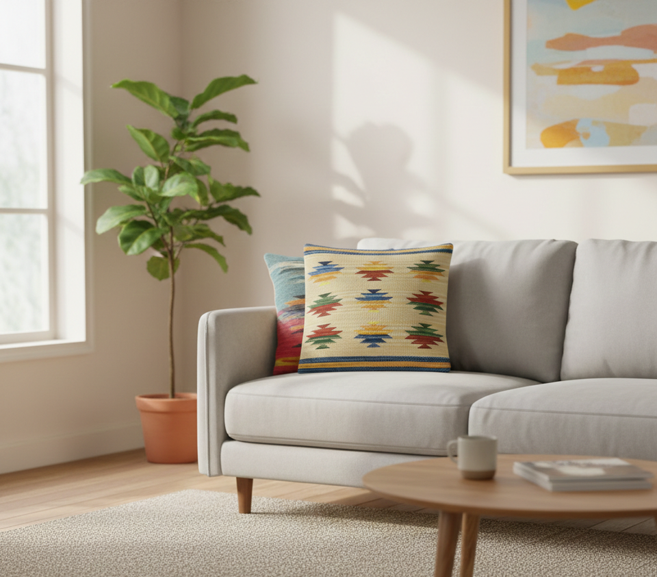 Housse de coussin en coton tissé à la main, motif floral carré moderne, fermeture éclair, lavable, beige, personnalisable, pour la maison et l'hôtel