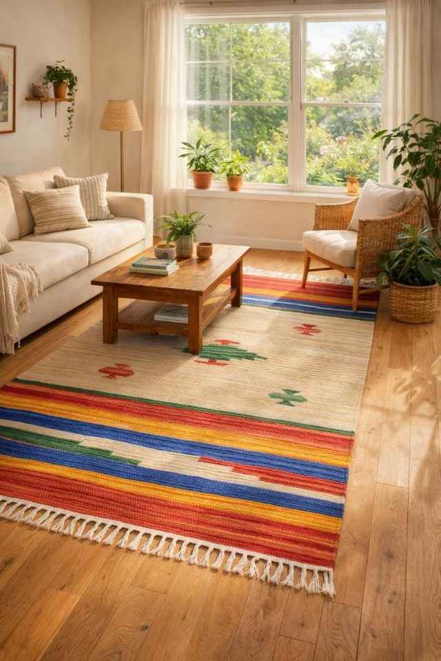 Tapis/chemin de table moderne en coton fait main, lavable en machine, réversible, épaisseur personnalisable, motif floral pour la maison et les voyages