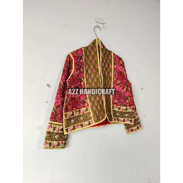 Veste courte matelassée légère réversible en coton faite à la main pour femmes, manteau vintage ouvert sur le devant, cadeau de fête pour elle