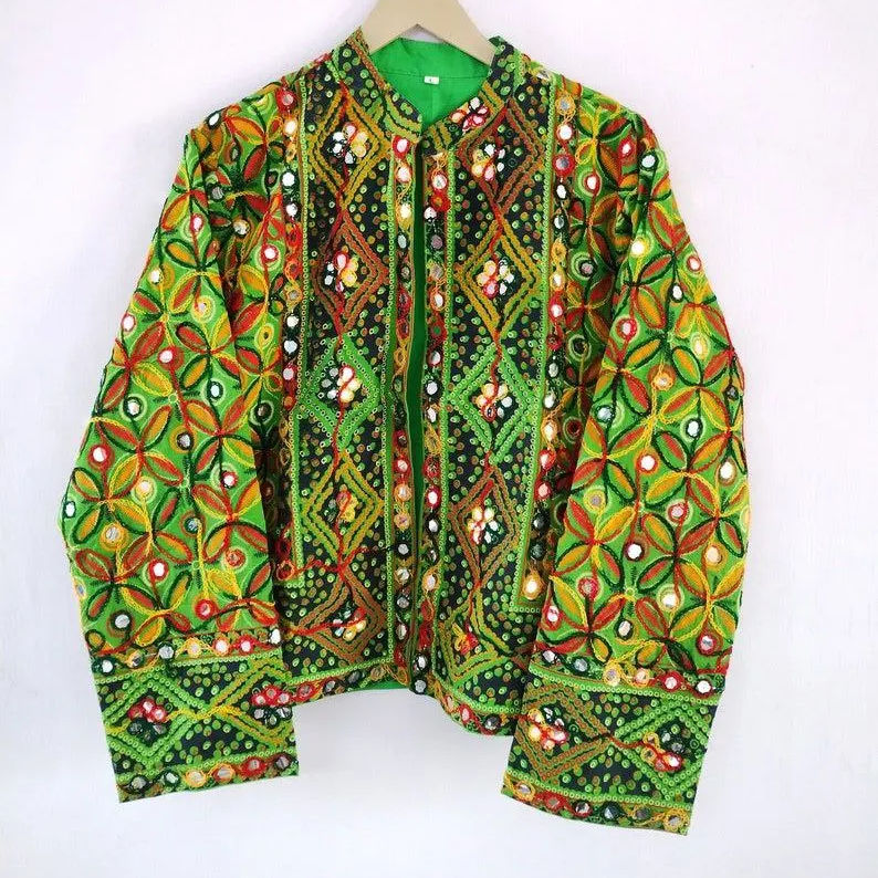 Veste en coton indienne faite à la main, brodée de Phulkari, pour femmes