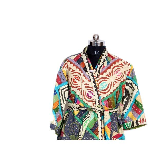 Kimono en coton Kantha imprimé patchwork motif travail floral long peignoir veste Maxi robe femmes vêtements ethniques maison hôtel 5XL