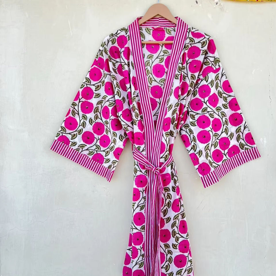 Fabric:Block Print Robe Cotton Kimono