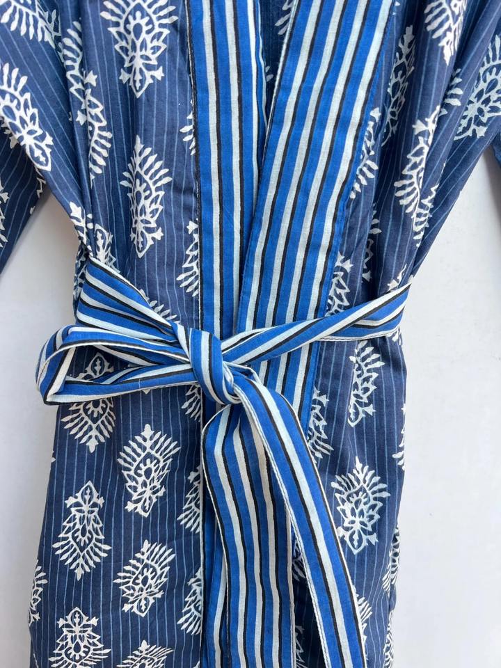 Robe de chambre kimono en coton, imprimé en bloc, robe de demoiselle d'honneur, vêtements de nuit d'été, taille plus, unisexe, col en V, longueur genou, robe de bain bohème