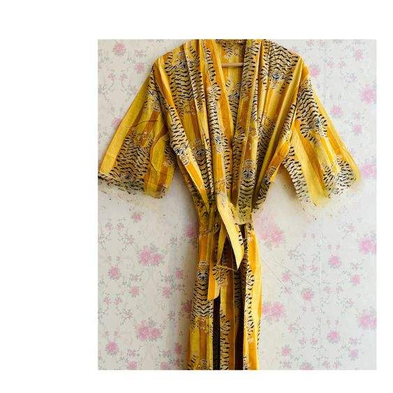 Kimono en coton Robe longue imprimée Vêtements unisexes Cadeau pour lui Cadeau de demoiselle d'honneur Cardigan Robe de bain en coton Robe de chambre