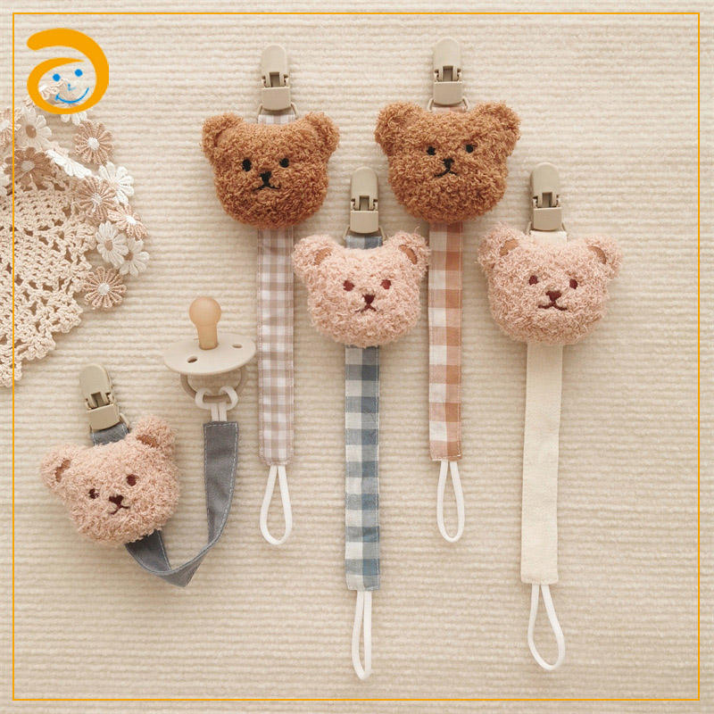 Chaîne de sucette en coton et lin avec attache métallique pour bébé