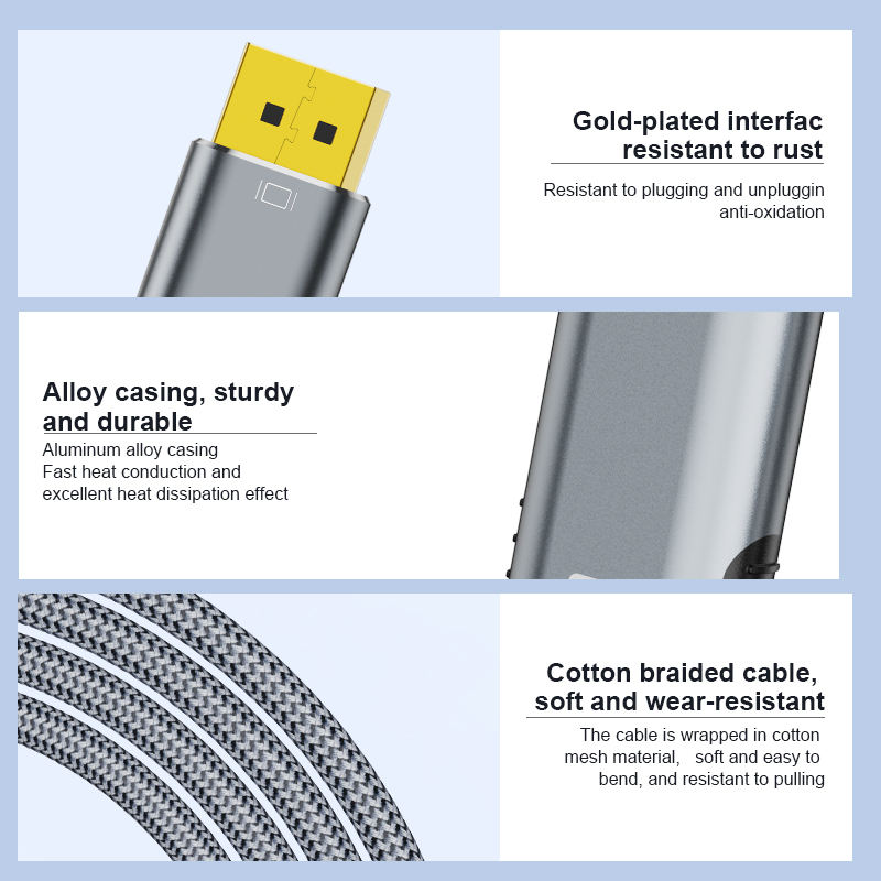 Connector Specification:DP Male, HDMI Male,Golden Plated